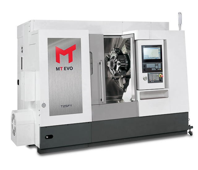 CNC-Universaldrehmaschine mit angetriebenen Werkzeugen und Reitstock.